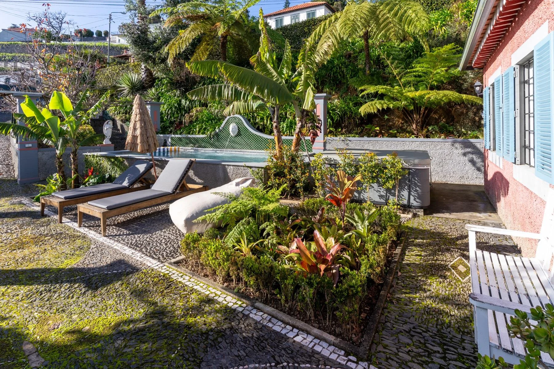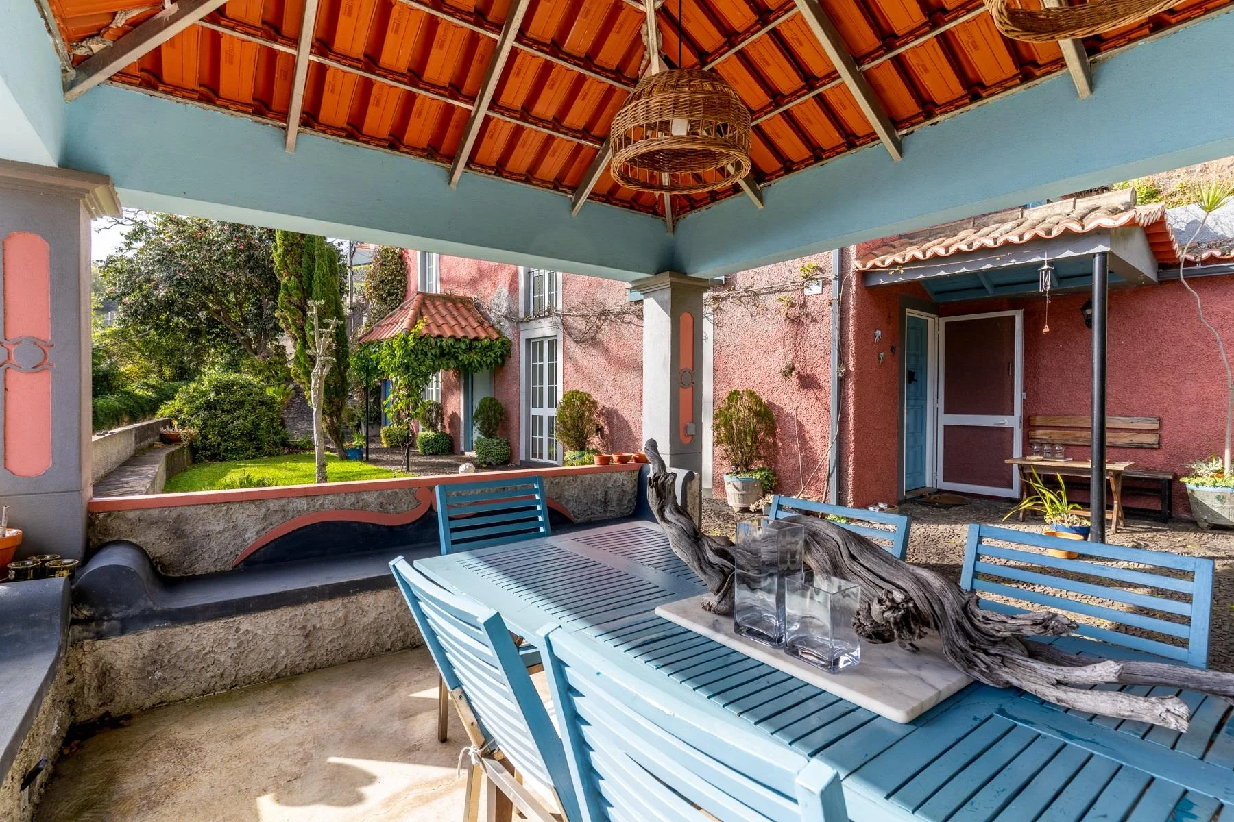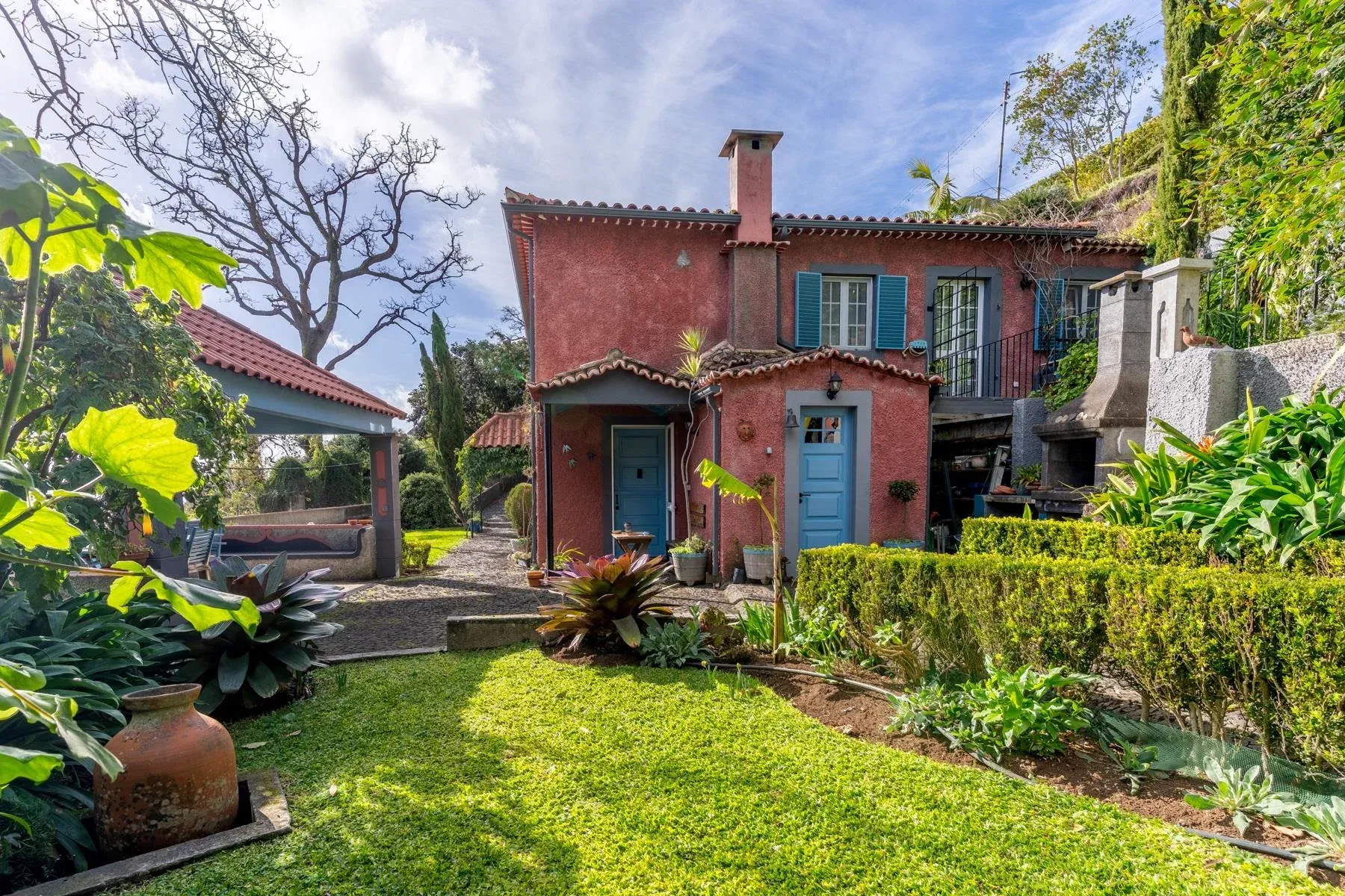 Wer davon träumt, auf einer der sichersten und klimatisch begünstigsten Inseln Europas ein Zuhause zu finden, wird in dieser authentischen madeirensischen Quinta sein persönliches Paradies entdecken. Im prestigeträchtigen Viertel Monte, hoch über der Hauptstadt Funchal gelegen, vereint die Quinta Belmonte traditionelle Inselarchitektur mit zeitgemäßem Komfort auf einzigartige Weise. Die charmante Residenz erstreckt sich über zwei Etagen und bietet auf großzügiger Fläche drei Schlafzimmer, von denen zwei über eigene Badezimmer verfügen. Zwei einladende Wohnbereiche auf beiden Etagen wurden mit liebevollen Details gestaltet, die den authentischen Charakter Madeiras widerspiegeln. Die voll ausgestattete Küche öffnet sich zum Außenbereich mit traditionellem Grillplatz, der gesellige Momente unter freiem Himmel verspricht.