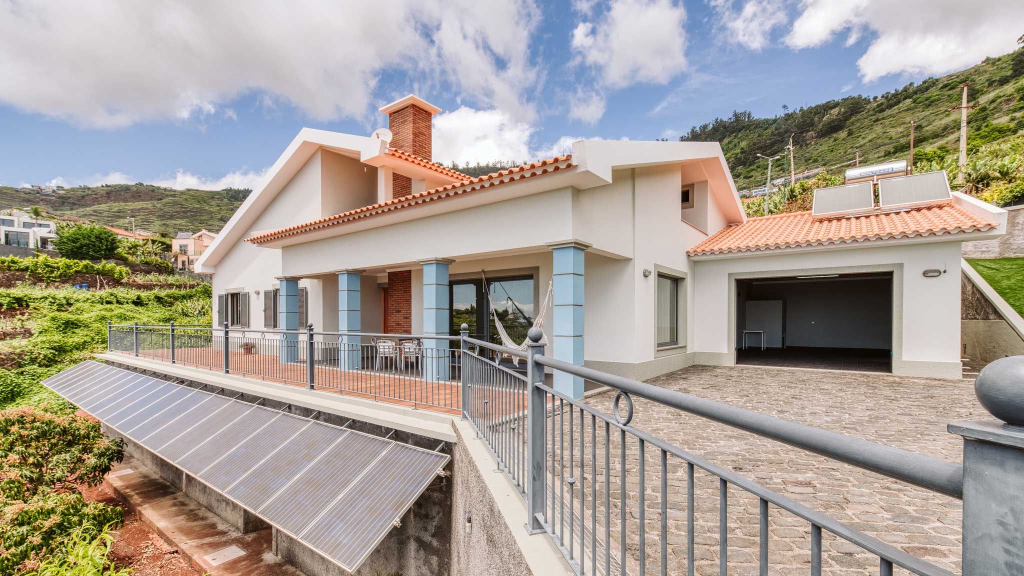 The attic is converted and can be used for additional living purposes. A spacious garage offers space for four vehicles. The house is energy efficient with photovoltaic panels for electricity generation and solar panels for water supply. From the terrace, one enjoys a magnificent view of the bay of Arco da Calheta.