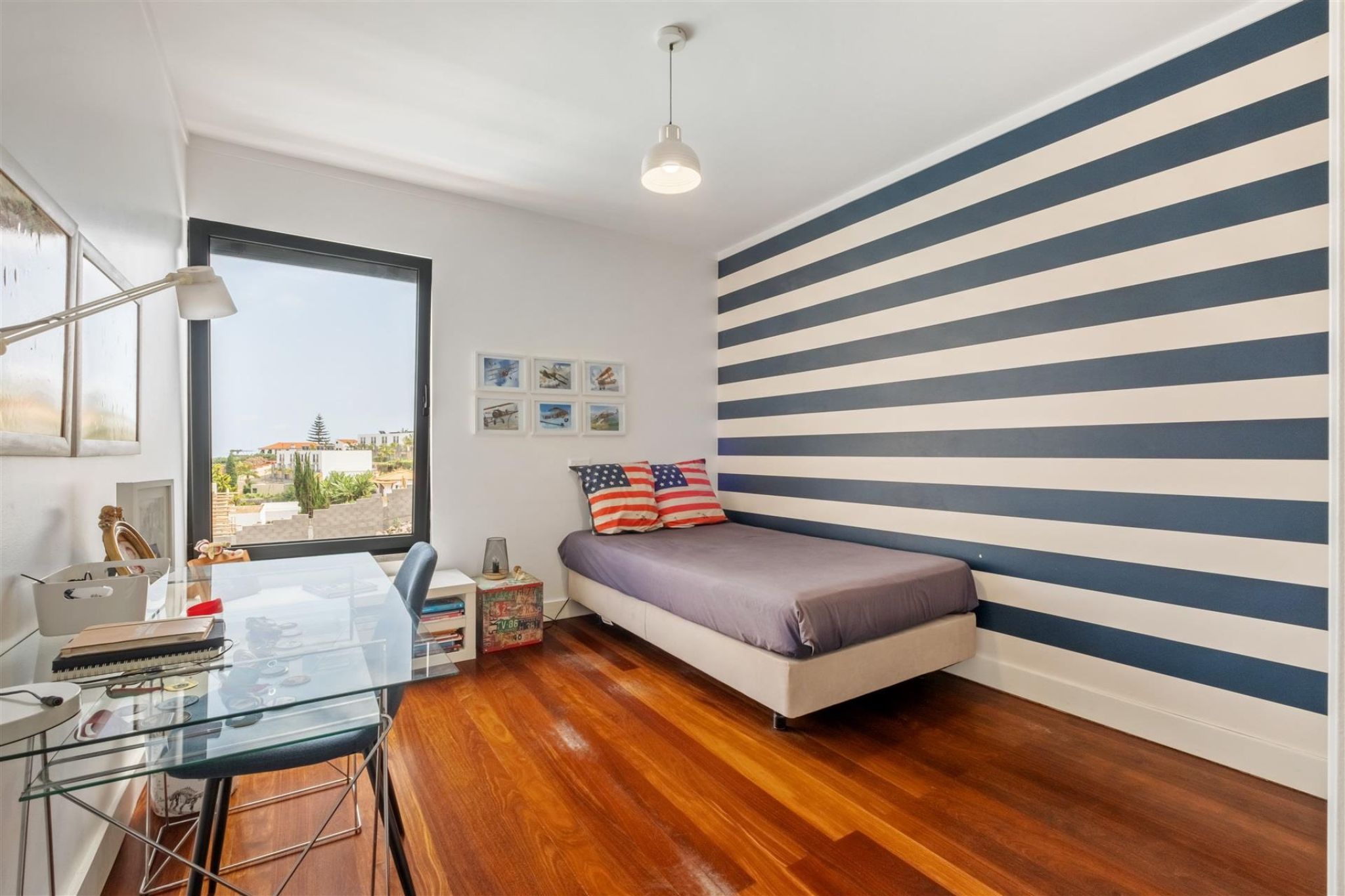 Imagine waking up in the morning with a view of your garden, while the mild Atlantic breeze flows through your villa in one of Funchal's most sought-after residential areas. Madeira is increasingly becoming the preferred destination for discerning buyers who value lasting worth, security, and quality of life – and this exceptional property combines all these advantages. This villa with contemporary architecture impresses with its harmonious design and thoughtful functionality. Set on a generous plot of 1,087 square meters, it offers 384 square meters of living space with light-filled rooms and perfect privacy. With three bedrooms, a flexible additional room ideal for use as a home office or guest room, and four elegant bathrooms, this residence meets the highest standards of modern living comfort.