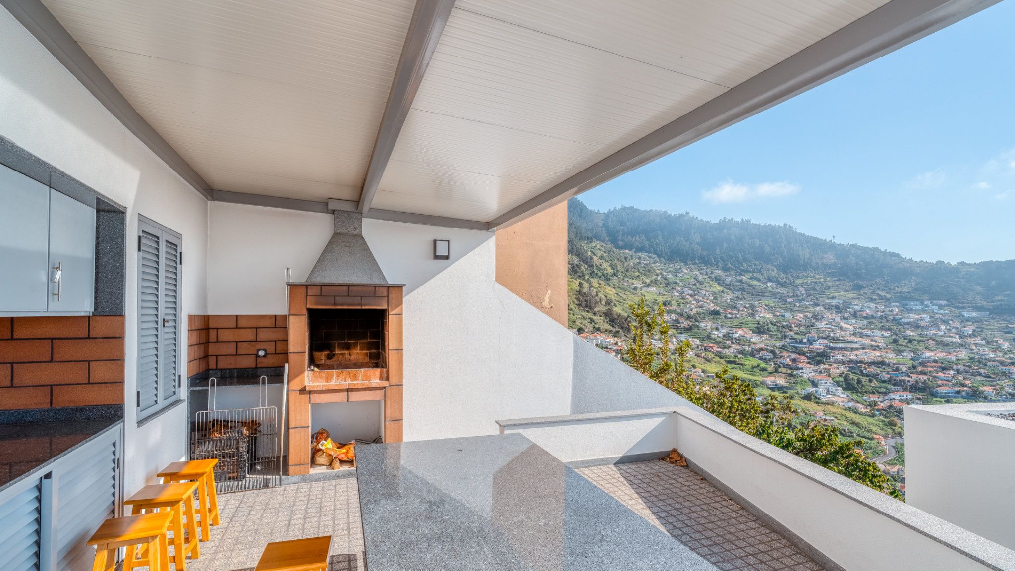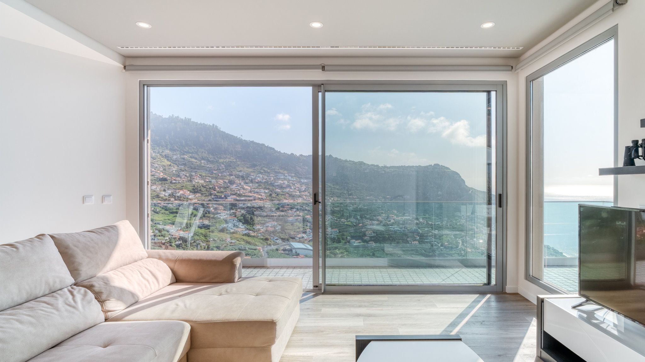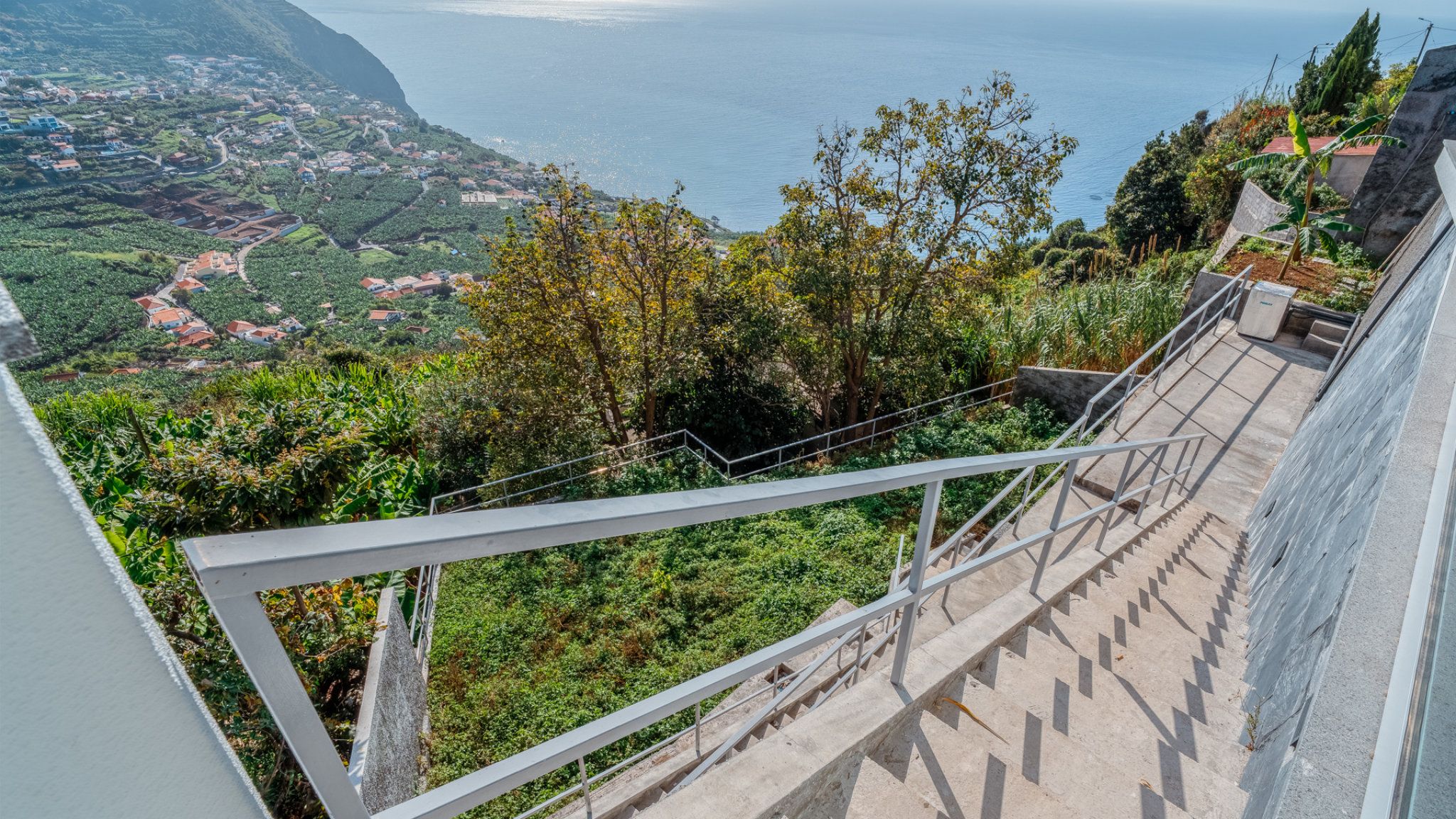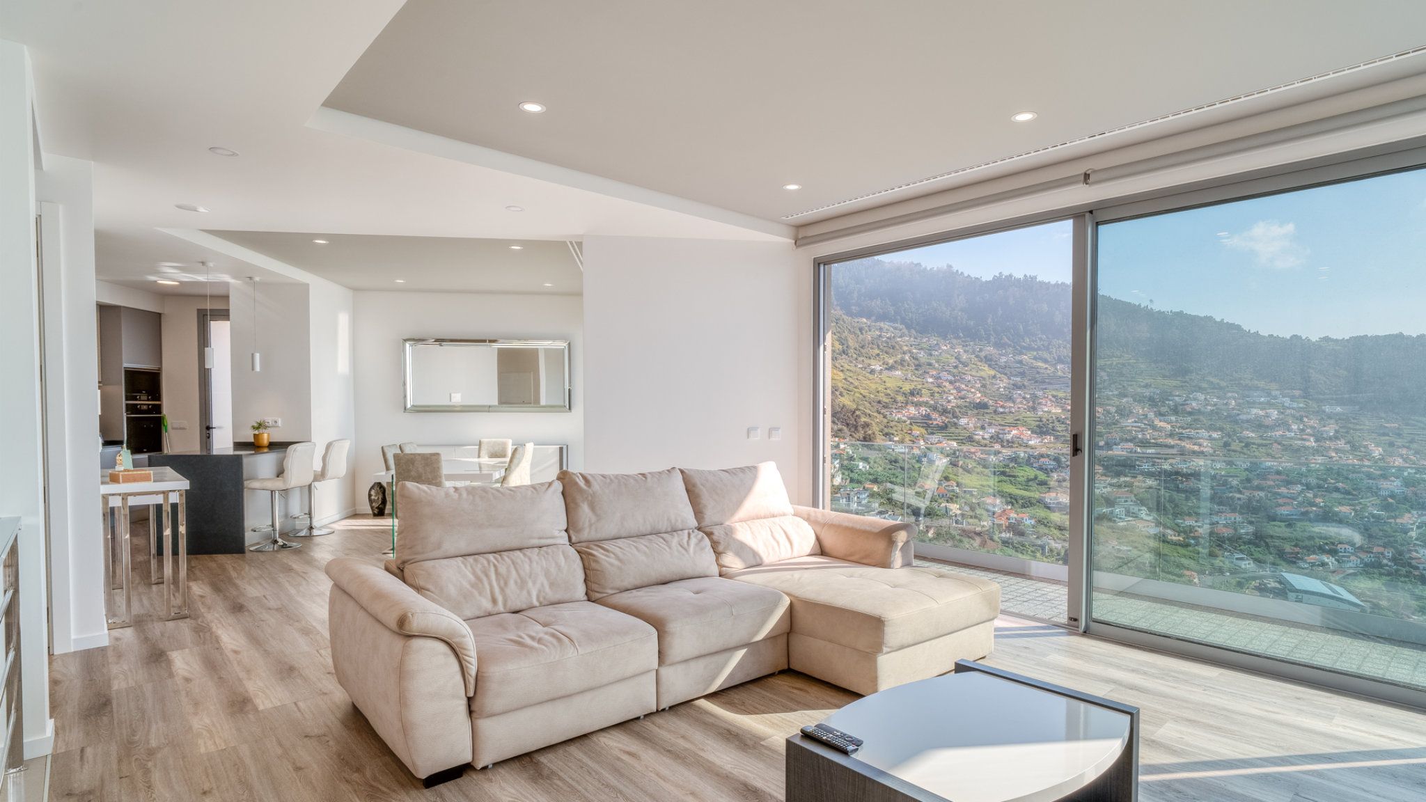 This beautiful villa is located on a quiet street with little traffic in Arco da Calheta. It is south-facing and offers wonderful views of the village and the Atlantic Ocean. The private driveway from the street leads to a forecourt with an adjoining covered parking space. The main entrance to the flat is accessed directly from here. The reception opens onto the living/dining area, which adjoins an open-plan, fully equipped kitchen.
