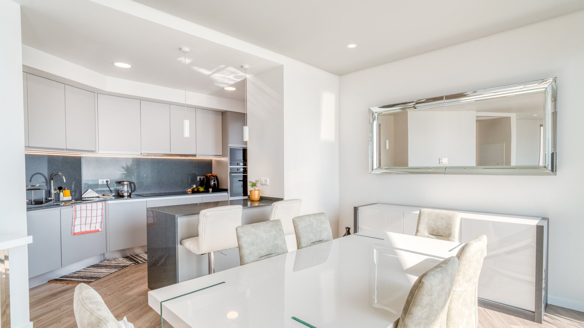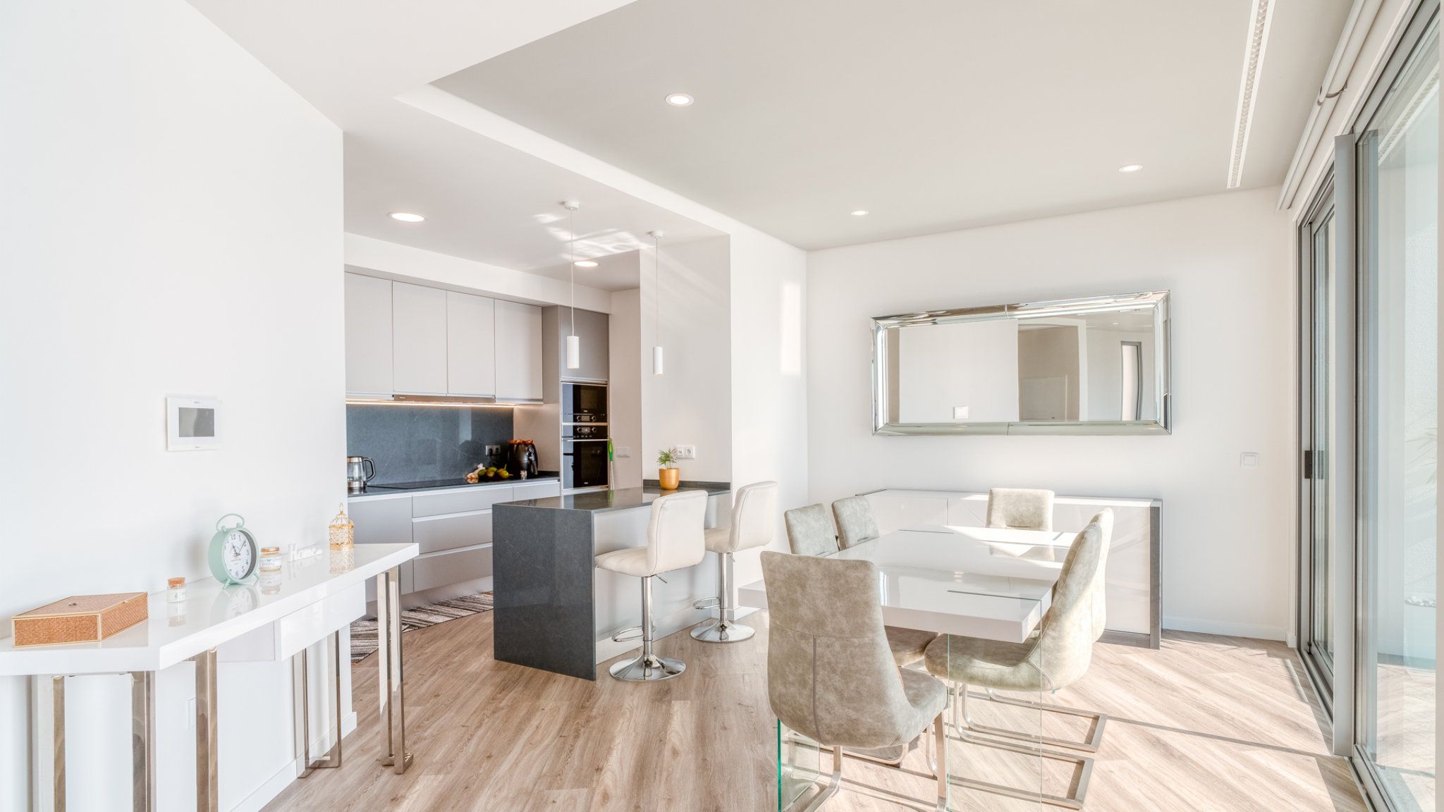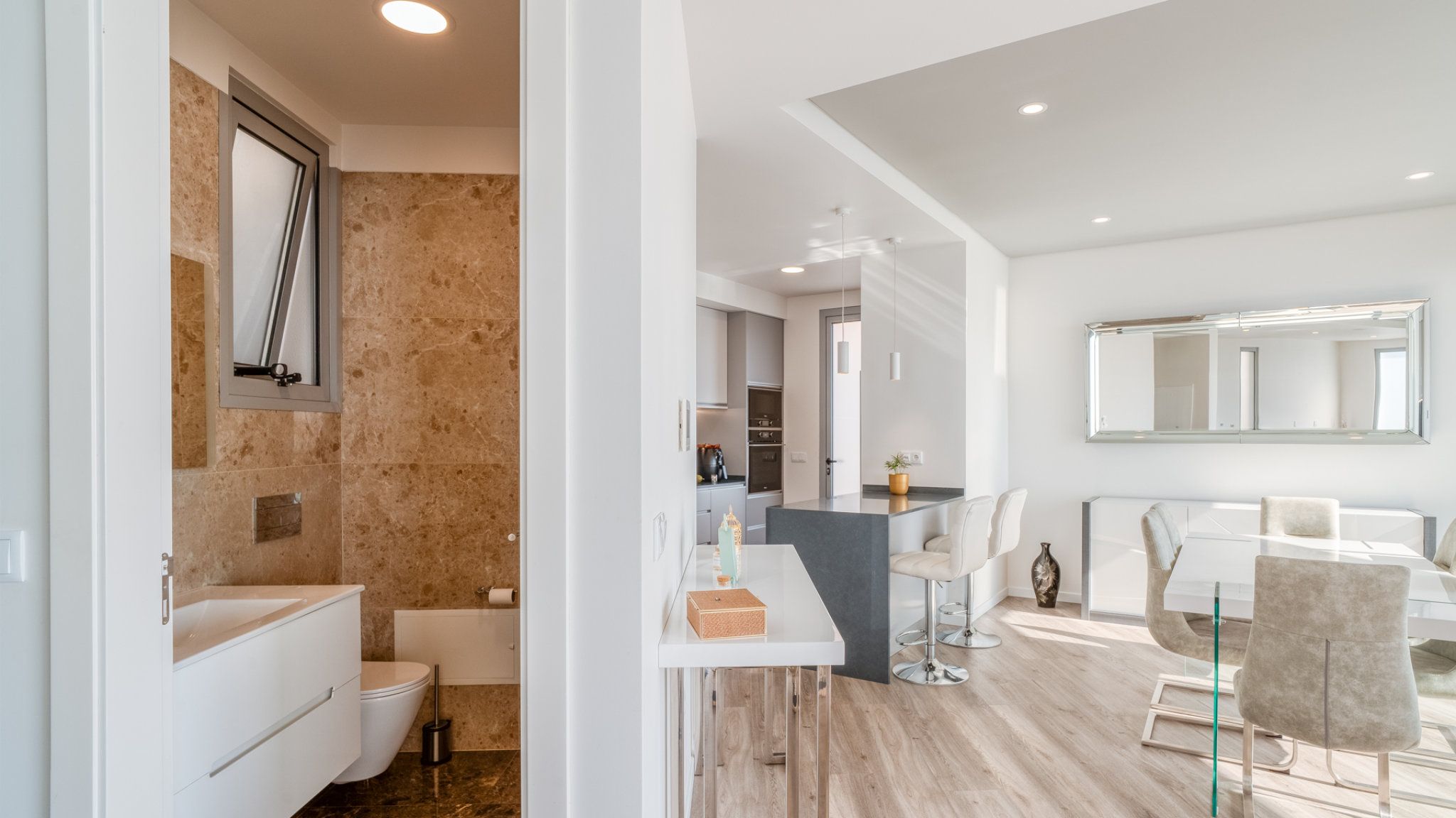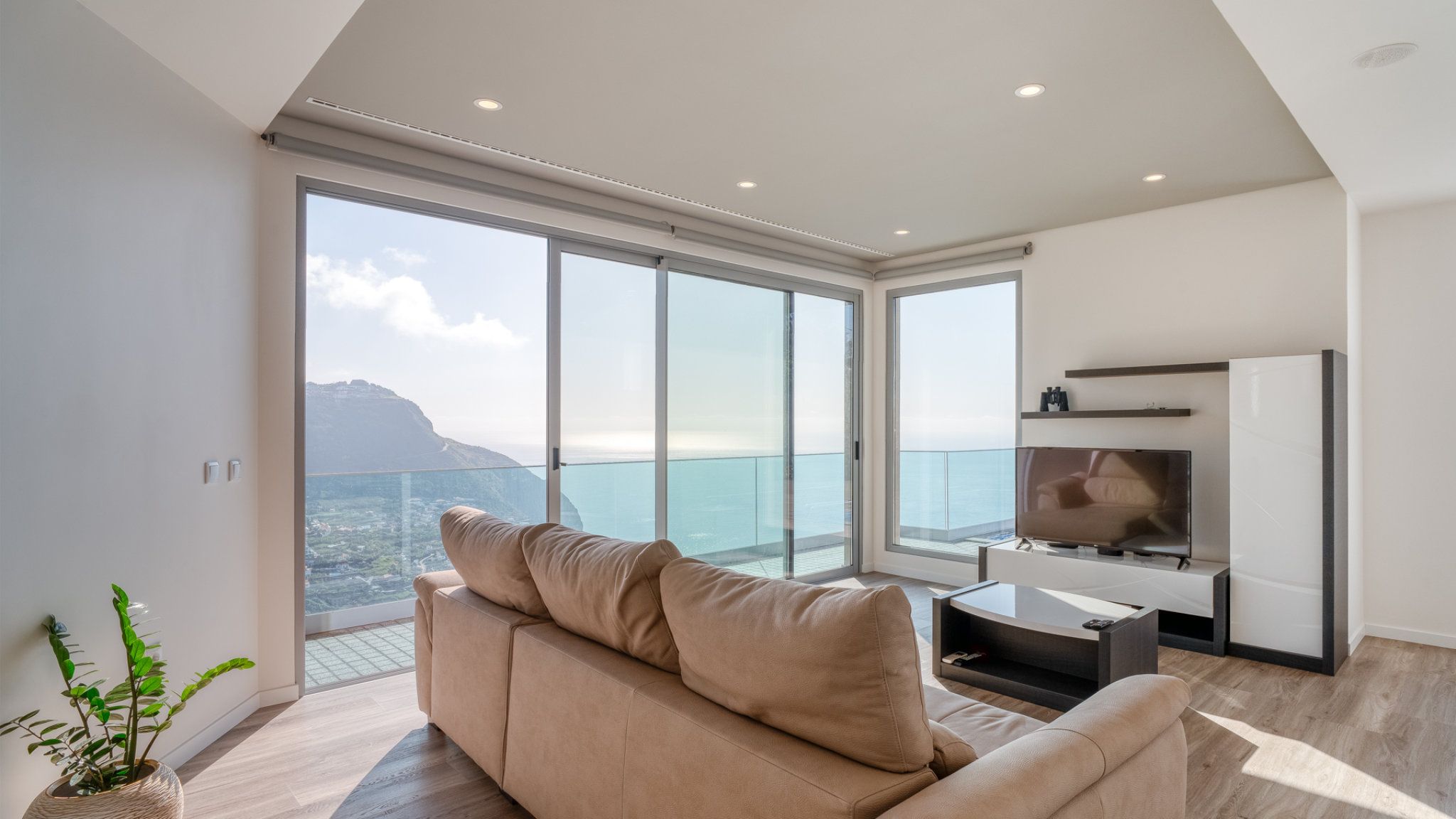 This beautiful villa is located on a quiet street with little traffic in Arco da Calheta. It is south-facing and offers wonderful views of the village and the Atlantic Ocean. The private driveway from the street leads to a forecourt with an adjoining covered parking space. The main entrance to the flat is accessed directly from here. The reception opens onto the living/dining area, which adjoins an open-plan, fully equipped kitchen.