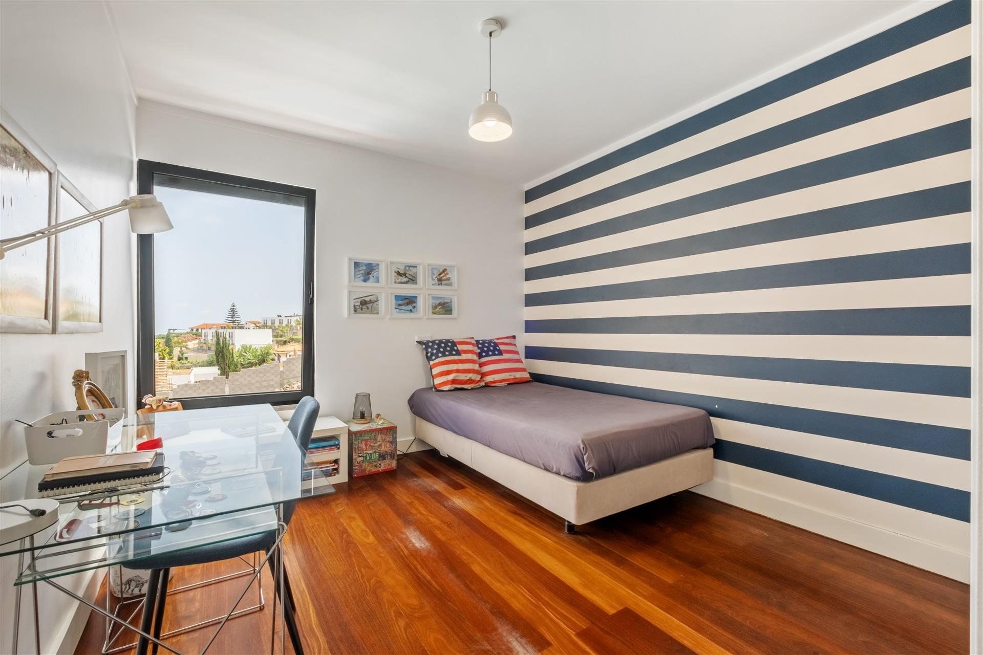 Stellen Sie sich vor, wie Sie morgens mit Blick auf den Garten aufwachen, während die milde atlantische Brise durch Ihre Villa in einer der begehrtesten Wohngegenden Funchals weht. Madeira entwickelt sich zunehmend zum bevorzugten Standort anspruchsvoller Käufer, die Werthaltigkeit, Sicherheit und Lebensqualität schätzen – und diese außergewöhnliche Immobilie vereint all diese Vorzüge. Diese Villa mit zeitgenössischer Architektur besticht durch ihre harmonische Formgebung und durchdachte Funktionalität. Auf einem großzügigen Grundstück von 1.087 Quadratmetern erstreckt sich eine Wohnfläche von 384 Quadratmetern, die lichtdurchflutete Räume und perfekte Privatsphäre bietet. Mit drei Schlafzimmern, einem flexiblen Zusatzraum, der sich ideal als Homeoffice oder Gästezimmer nutzen lässt, und vier stilvollen Badezimmern erfüllt diese Residenz höchste Ansprüche an modernen Wohnkomfort.
