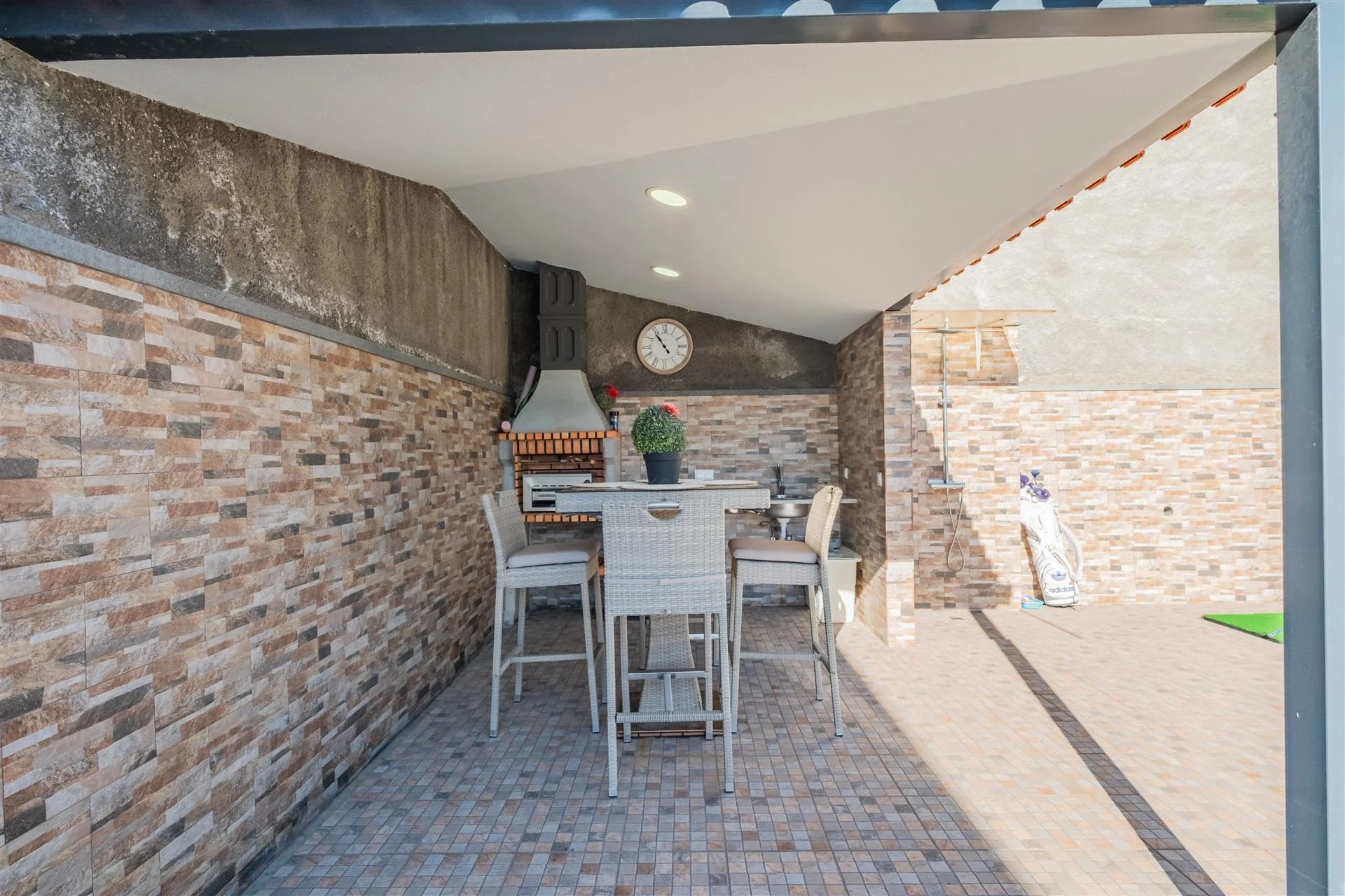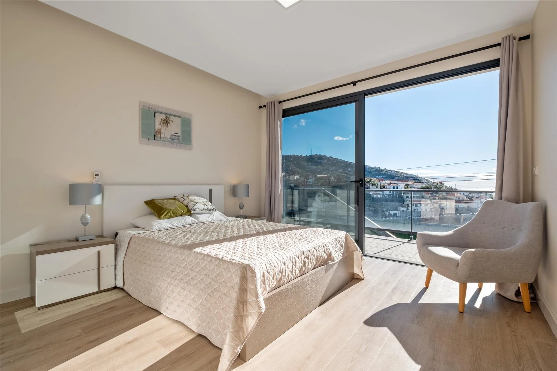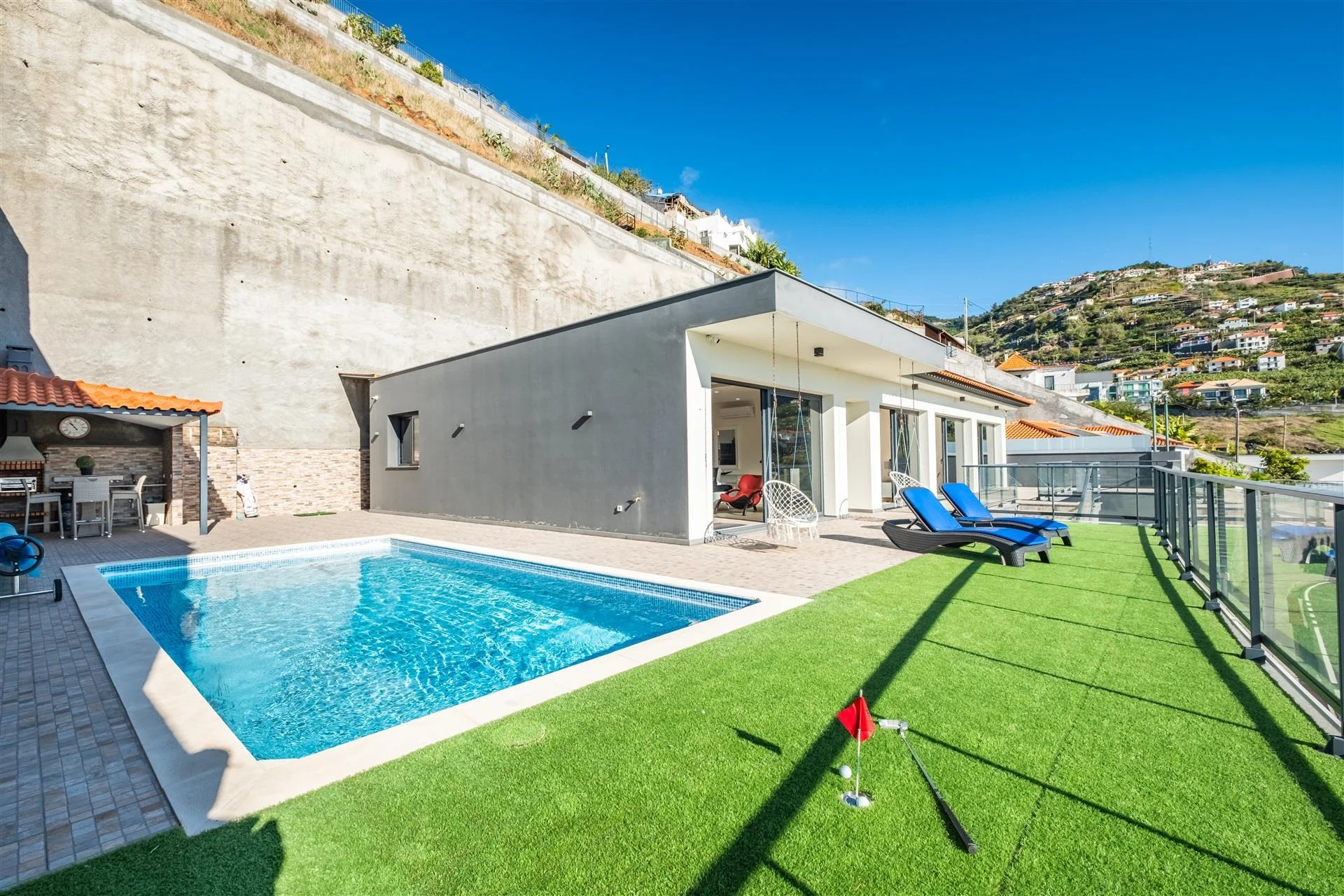 Die 2019 erbaute, eingeschossige Villa verbindet auf 247 Quadratmetern Wohnfläche großzügiges Raumgefühl mit durchdachter Funktionalität. Drei Schlafzimmer, jedes mit eigenem Bad und direktem Zugang ins Freie, schaffen ein Wohnerlebnis, das Innen und Außen nahtlos verschmelzen lässt. Die 26 Quadratmeter große Master-Suite bietet dabei ein Höchstmaß an Privatsphäre und Komfort. Insgesamt drei Badezimmer, ein funktionales Untergeschoss und Stellplätze für zwei Fahrzeuge runden das durchdachte Raumkonzept ab. Das 878 Quadratmeter große Grundstück entfaltet seinen besonderen Reiz im Außenbereich. Rund 250 Quadratmeter Freifläche mit großzügiger Terrasse, Veranda und einem Swimmingpool laden dazu ein, den Blick über den Atlantik und die Berglandschaft schweifen zu lassen. Dank der Ausrichtung nach Osten, Süden und Norden genießen Sie ganztägig Sonne –