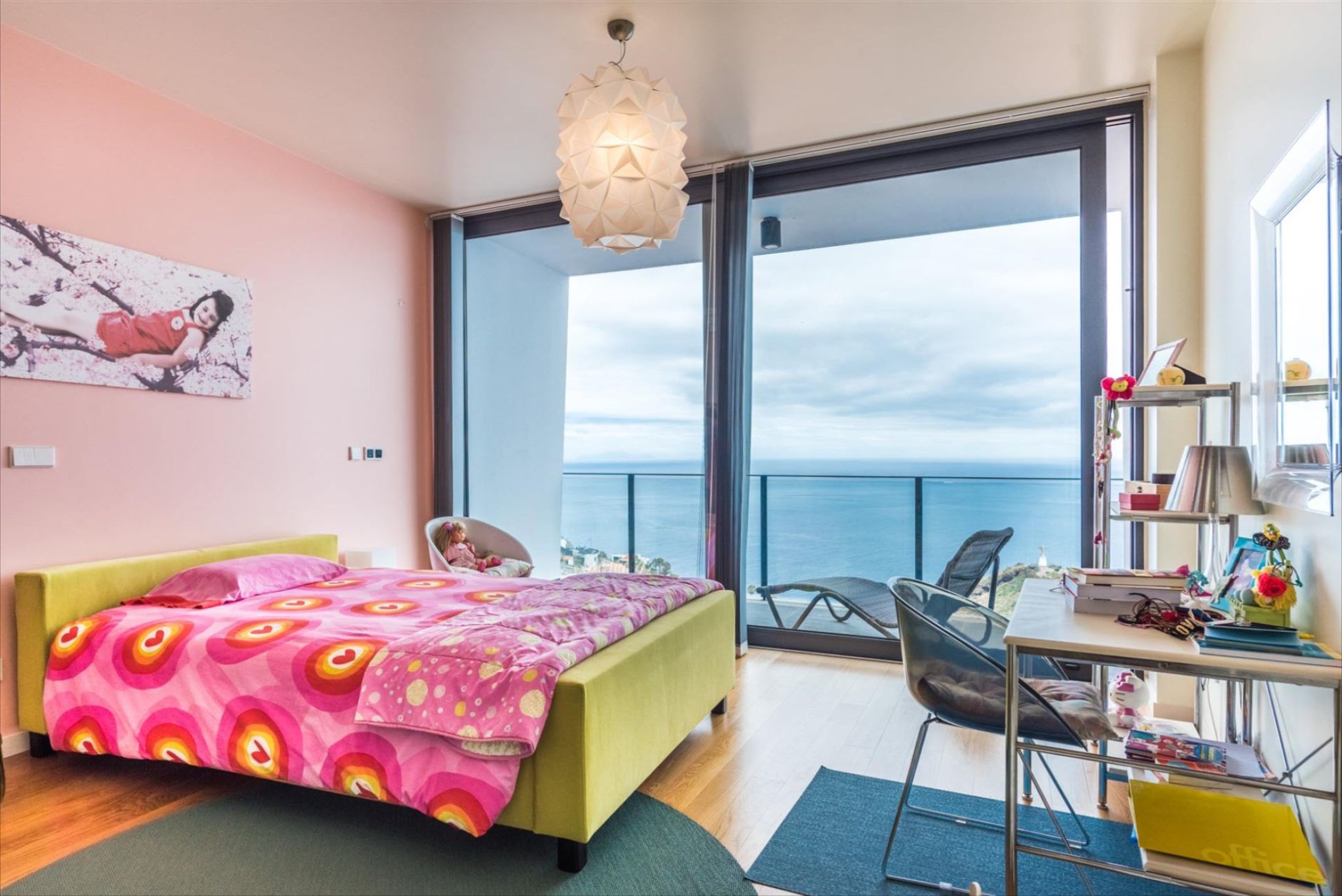 Willkommen in dieser beeindruckenden Villa in Santa Cruz, Madeira, die modernes Design mit atemberaubendem Meerblick vereint. Auf einem großzügigen Grundstück von 1210 m² und einer Wohnfläche von 298 m² bietet dieses Anwesen höchsten Wohnkomfort. Die Villa erstreckt sich über zwei Ebenen: Im Eingangsbereich befinden sich eine voll ausgestattete Küche mit Vorratsraum, ein praktischer Hauswirtschaftsraum sowie ein großzügiger Wohnbereich. Zwei luxuriöse Suiten mit begehbarem Kleiderschrank und jeweils privatem Balkon runden diese Etage ab.