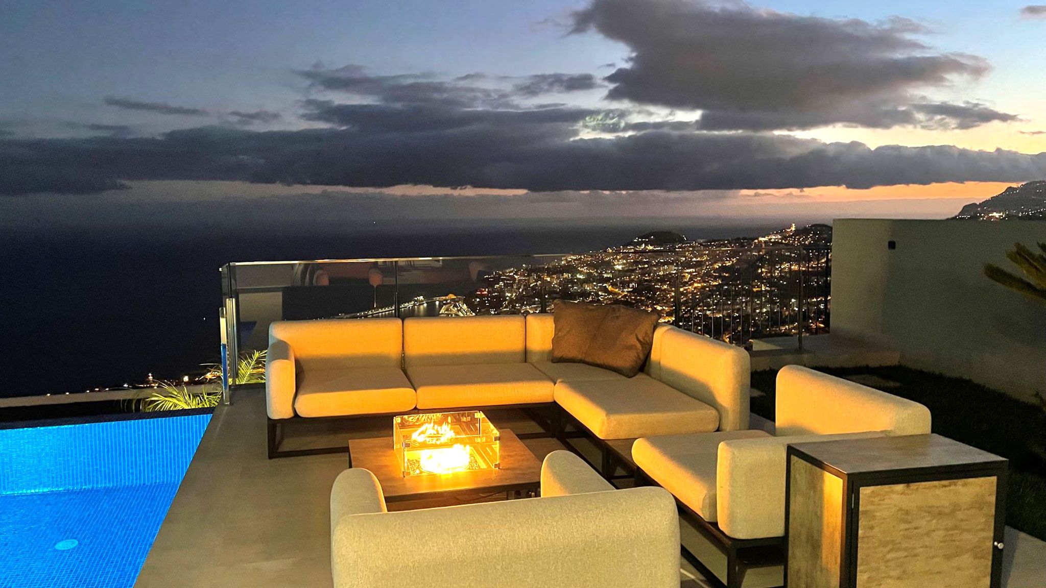 Diese außergewöhnlichen Designervillen oberhalb der Hauptstadt bestechen durch eine fantastische Lage mit einem unglaublichen Blick über die Bucht und den Hafen von Funchal. Die Luxusimmobilien zeichnen sich durch erstklassige Qualität, hohe Funktionalität und modernsten Komfort aus. Die Villen befinden sich auf einem jeweils 750 m² großen Grundstück mit Garten und haben eine bebaute Fläche von 213,20 m² sowie 120 m² offene Terrassen. Die Häuser wurden von einem renommierten Studio für Architektur und Innendesign mit hochwertigen Materialien und Möbeln ausgestattet.