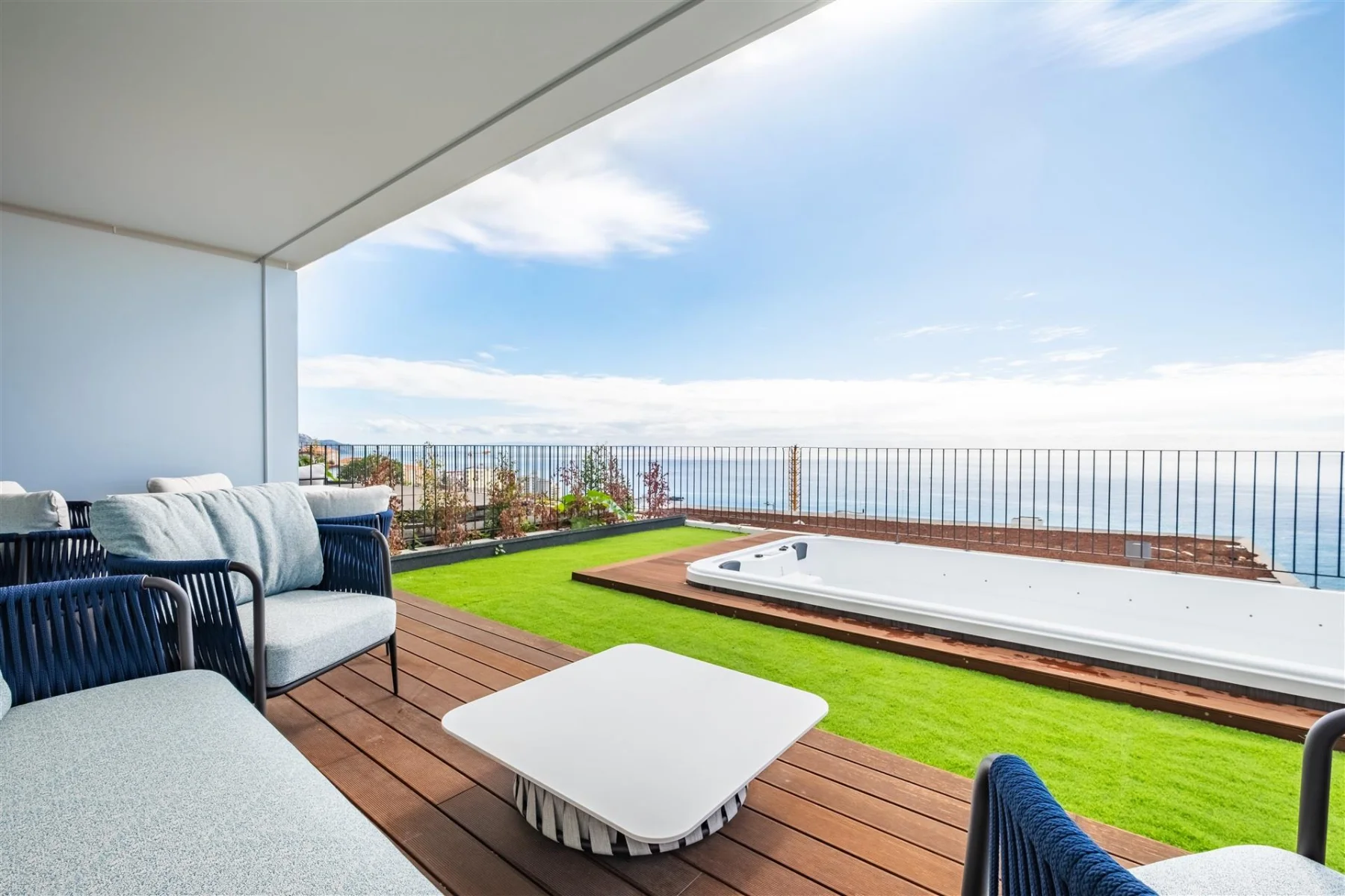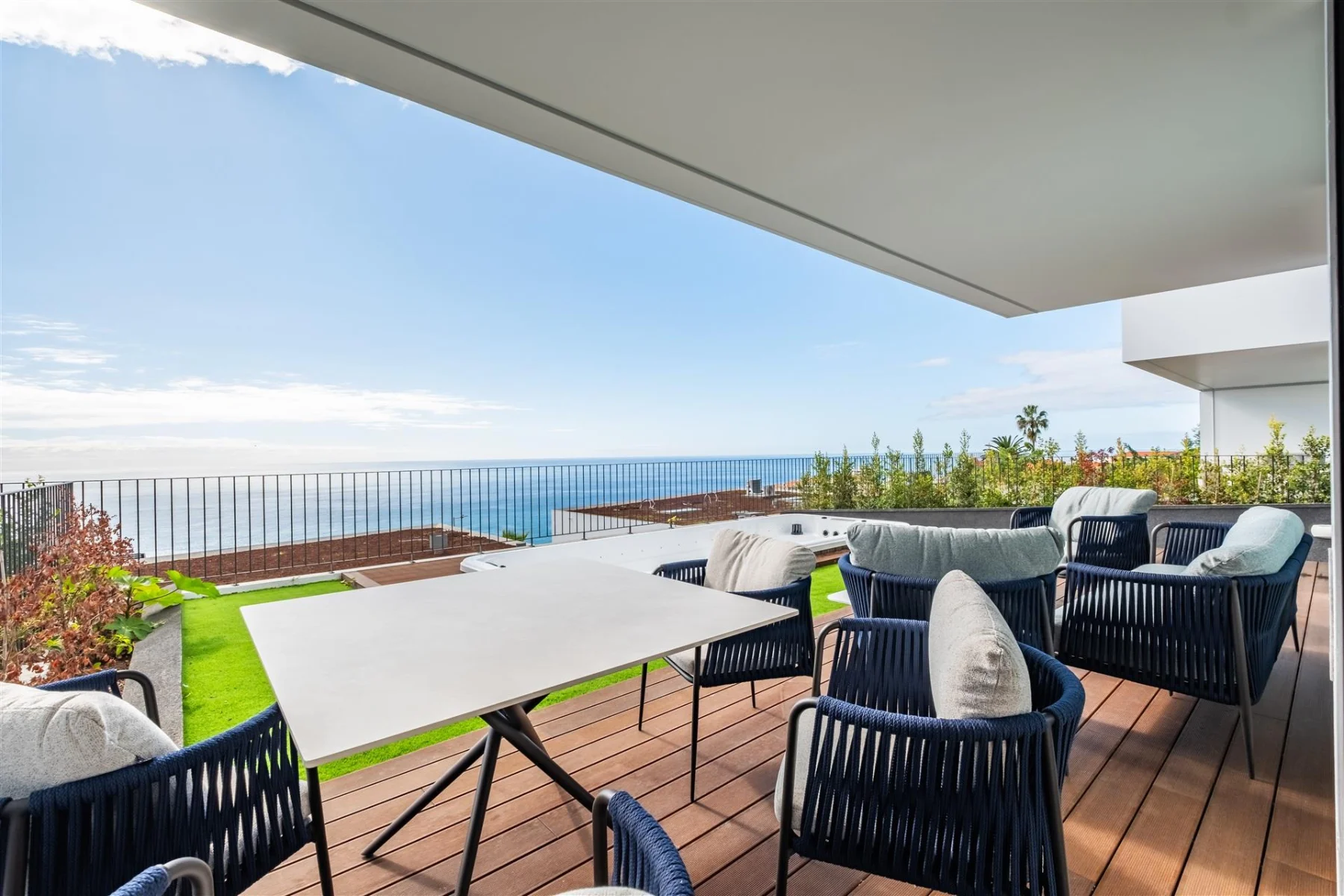 Stellen Sie sich vor, Sie erwachen jeden Morgen mit Blick auf den endlosen Atlantik, während die milde Brise Madeiras durch Ihre Terrasse weht. In São Martinho, einem der begehrtesten Viertel Funchals, erwartet Sie diese zeitgenössische Villa als Ihr persönlicher Rückzugsort auf der Insel des ewigen Frühlings. Diese moderne Architektur auf 198 Quadratmetern Wohnfläche vereint mediterranes Lebensgefühl mit durchdachtem Komfort. Im Erdgeschoss empfängt Sie ein großzügiger Wohnbereich mit vollausgestatteter Küche. Das private Jacuzzi im liebevoll gestalteten Garten mit Grillbereich lädt zum Verweilen ein, während Sie die Seele baumeln lassen.