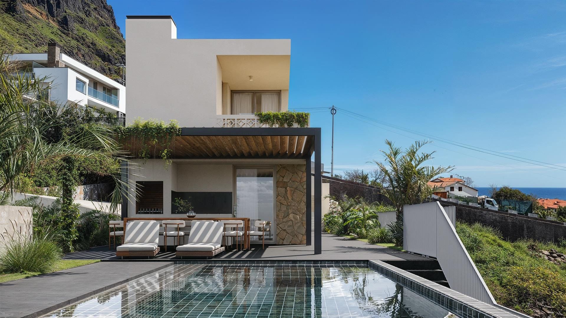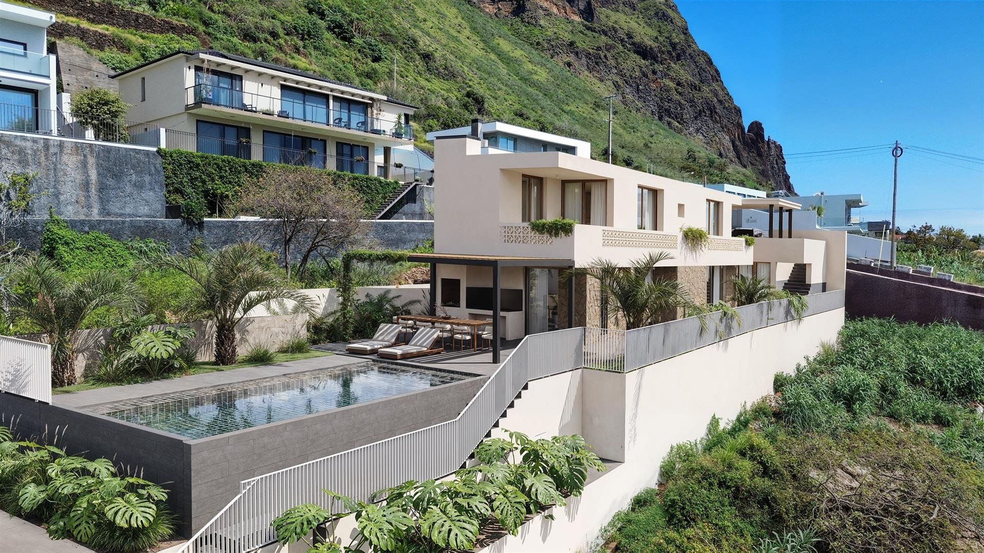Stellen Sie sich vor, wie Sie morgens auf Ihrer großzügigen Südterrasse erwachen und der Blick über den endlosen Atlantik schweift, während die Sonne Madeiras „Blumeninsel" in goldenes Licht taucht. Diese zeitgenössische Villa in Paul do Mar vereint modernen Wohnkomfort mit der einzigartigen Lebensqualität, die Madeira zur mehrfach ausgezeichneten „World's Leading Island Destination" macht. Auf einem weitläufigen Grundstück von 900 Quadratmetern präsentiert sich diese exklusive Ferienimmobilie als Rückzugsort für anspruchsvolle Genießer. Die 198 Quadratmeter Wohnfläche verteilen sich harmonisch über zwei Etagen und bieten vier Schlafzimmer, darunter zwei Master-Suiten mit atemberaubendem Meerblick. Das Erdgeschoss empfängt Sie mit einem lichtdurchfluteten Wohnbereich, einer vollausgestatteten Küche und einem Schlafzimmer mit eigenem Bad, das sich flexibel als Büro nutzen lässt – ideal für alle, die Madeiras perfekte Work-Life-Balance schätzen.